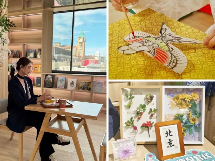 在这里,消费者可以化身“一日匠人”,体验京绣、风筝、通草花、掐丝珐琅、古法黄金、丝绫堆绣等非遗技艺,感受非遗的魅力;点一份点心搭配盖碗咖啡,再闲适地翻阅一本书籍,在舒适惬意的文化休闲空间,享受到味蕾与精神的双重惊喜;在开放式展架,选购精选自全国各地的艺术非遗创新产品,更加直观地探索艺术非遗与现代生活的交融。